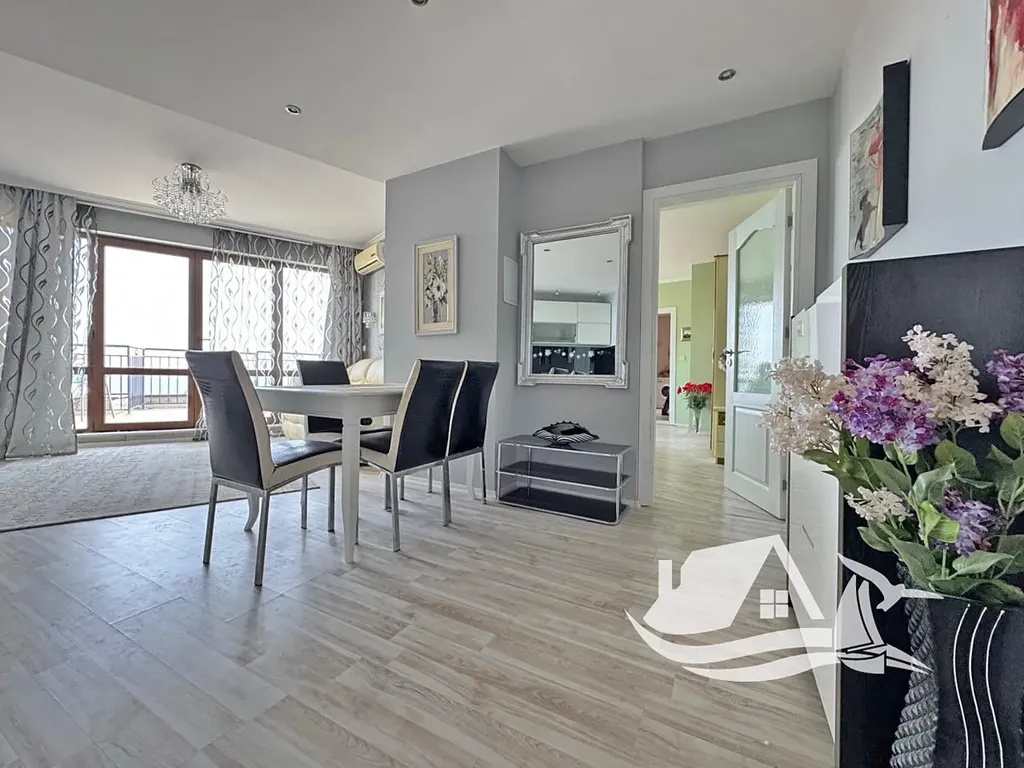 Apartmán o dispozici 2+kk a celkové ploše 120 - m² se nachází v 6. patře ze šesti a působí mimořádně vzdušně a otevřeně. Prostorný obývací pokoj s kuchyňským koutem tvoří přirozené centrum bytu a plynule navazuje na terasu s nádherným výhledem na moře. Ložnice nabízí klid a soukromí, koupelna je řešena elegantně a prakticky. Celek působí harmonicky, promyšleně a nabízí dostatek prostoru jak pro vlastní pobyty, tak pro pohodlné delší využití. Apartmán se prodává kompletně vybavený, připravený k okamžitému užívání bez dalších investic.