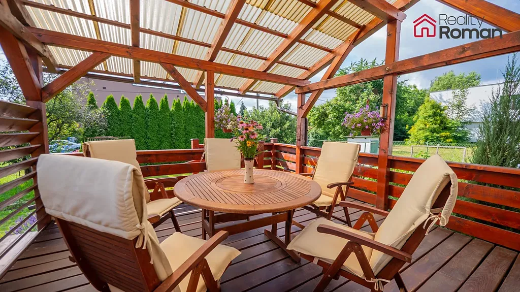 Součástí domu je rozlehlá a pečlivě udržovaná zahrada s ovocnými stromy, okrasnými keři, zeleninovými záhony, skleníkem, hospodářskou budovou a venkovním krbem. Zahrada nabízí příjemné soukromí a dostatek prostoru pro relaxaci i zahrádkářské využití.