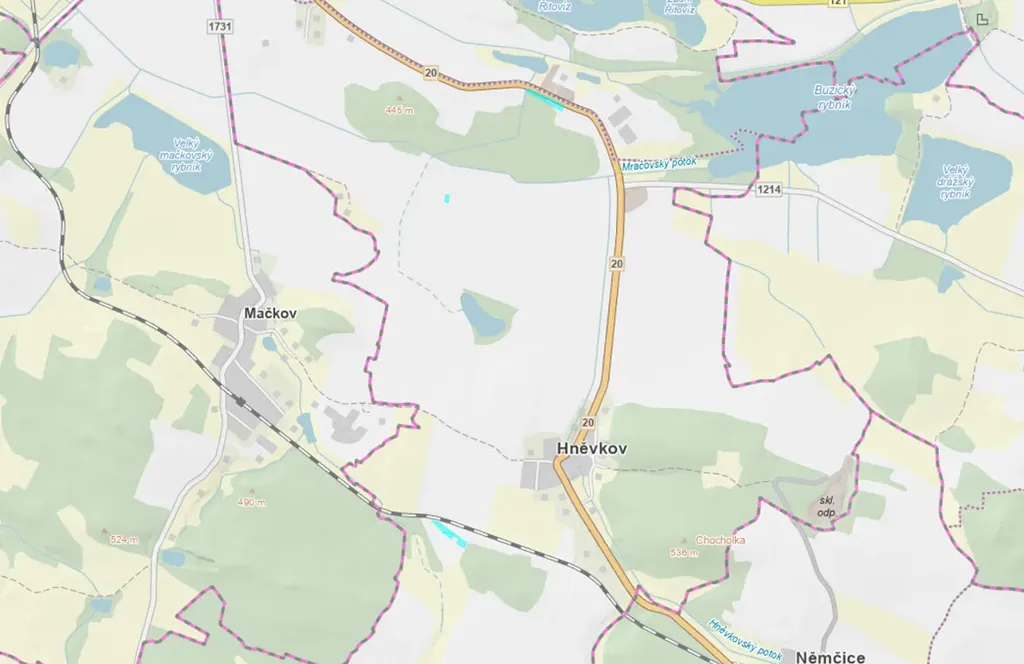 Předmětem dražby je ideální podíl ve výši 1/16 a id. 1/32 pozemků v k.ú. Hněvkov u Mačkova, obec Blatná, okres Strakonice o celkové velikosti 11080m2