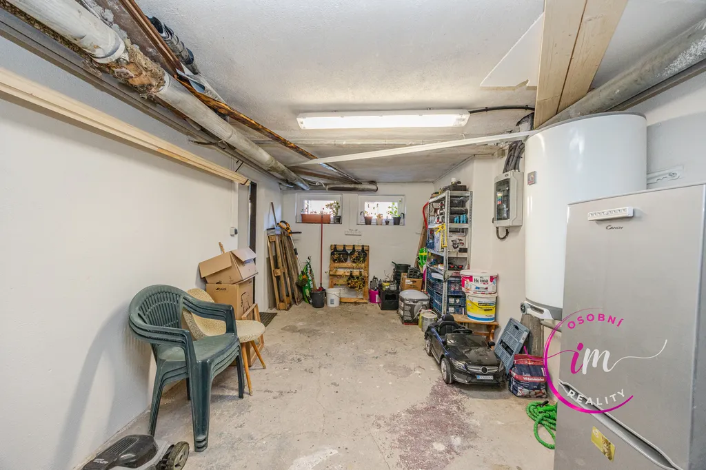 Samozřejmě nemůže chybět sklep, ale tady je k tomu dokonce ještě půlka garáže. Jo, sice půlka, ale to se taky počítá. Úplně na parkování to není, ale místa pro Vašeho plechového miláčka na nájezdu před domem, nebo kolem domu je spousta.