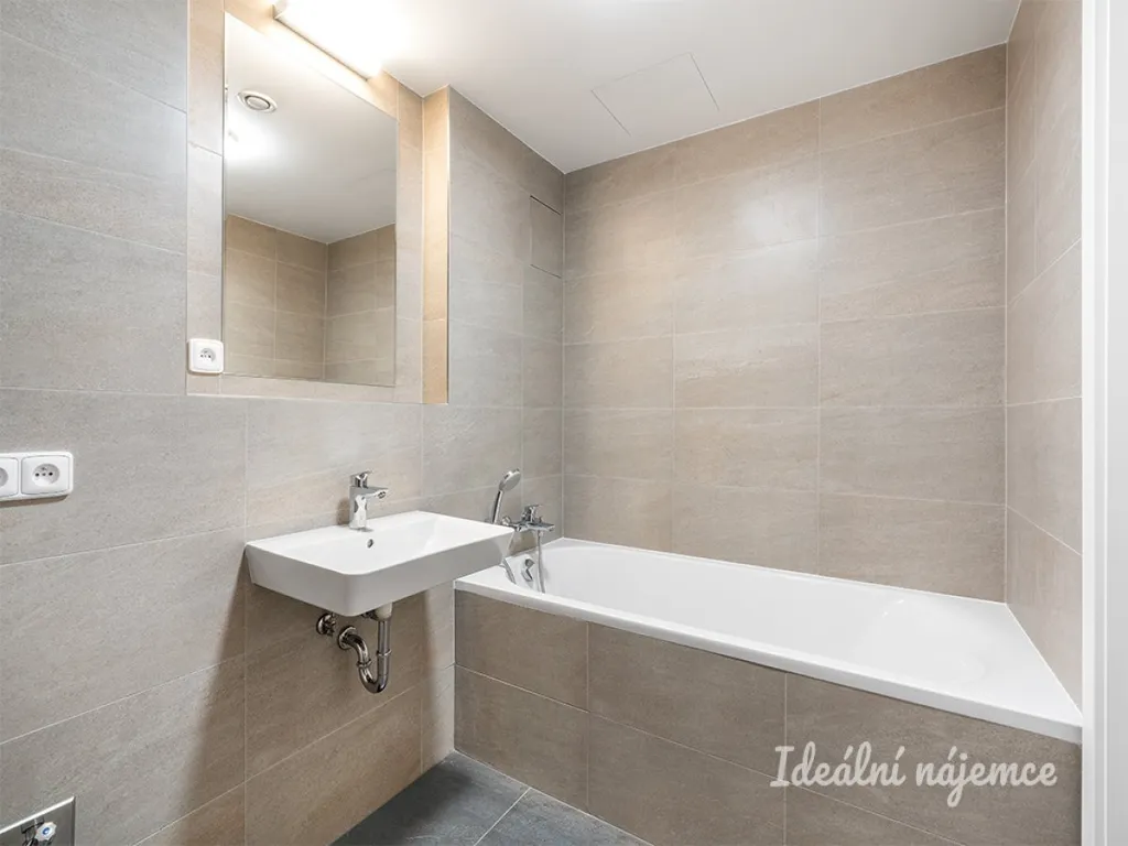 K pronájmu je částečně zařízen - po vstupu do bytu najdeme v předsíni vestavěné šatní skříně. Z předsíně se dostaneme do obývacího pokoje s plně vybaveným kuchyňským koutem - vestavěnou ledničkou s mrazákem, myčkou nádobí, elektrickou troubou a indukční varnou deskou s digestoří. Z obývacího pokoje se dostaneme na balkon s jihovýchodní orientací. V ložnici najdeme další šatní skříně. V koupelně se nachází vana a umyvadlo se skříňkou, dále přípojka na pračku. Toaleta je umístěna samostatně.