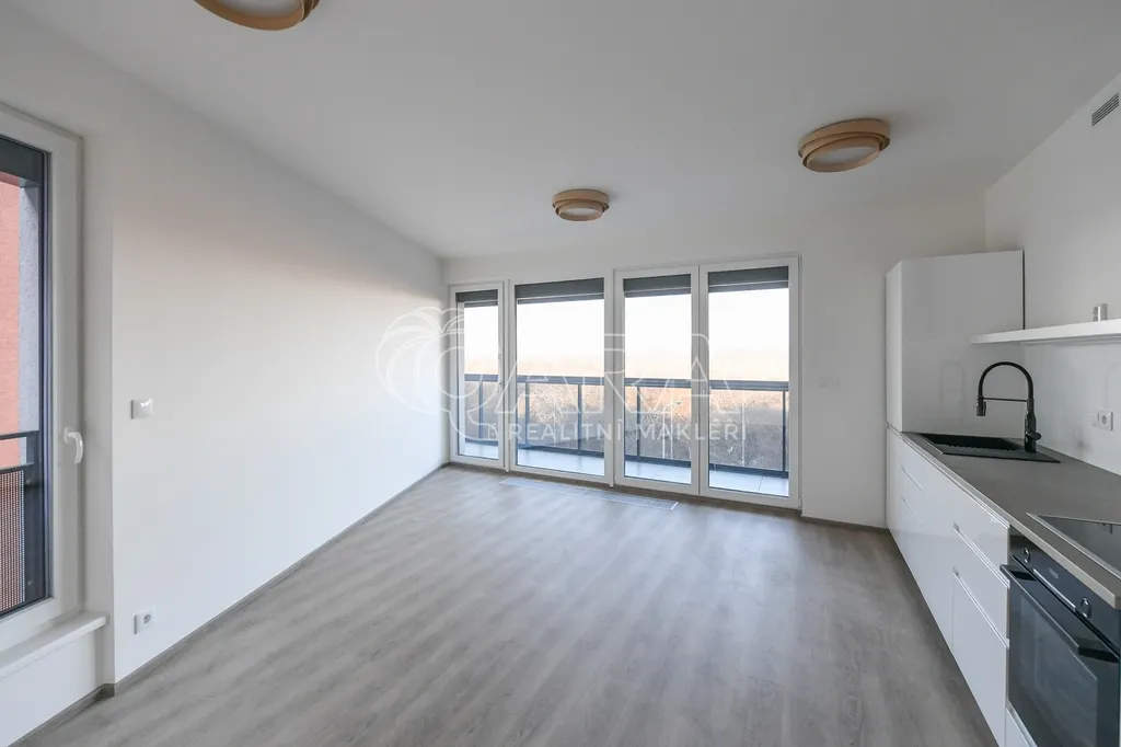 Byt o celkové výměře 78 m² (vnitřní plocha bytu 47,1 m², balkon 24,4 m², sklep 6,5 m²) je umístěn v 5. NP novostavby bytového domu z roku 2025. Byt sestává z obývacího pokoje s kuchyňským koutem, ložnice, koupelny se sprchovým koutem a WC a předsíně. V bytě je položena vinylová podlaha a dlažba. Orientace bytu je na sever. Z obývacího pokoje a ložnice je možný vstup na velkorysý balkon s výhledem do rozlehlé zeleně hostivařské přehrady. Byt je vybaven kuchyňskou linkou s vestavěnými spotřebiči, prostornými vestavěnými skříněmi v předsíni, pračkou kombinovanou se sušičkou, rekuperací vzduchu a venkovními žaluziemi na dálkové ovládání ve všech oknech (vč. koupelny). K bytu dále náleží nadstandardně velký sklep, který je umístěn v suterénu domu hned za garážovým stáním o velikosti stání pro invalidy. Sklep i stání se pronajímají spolu s bytem.