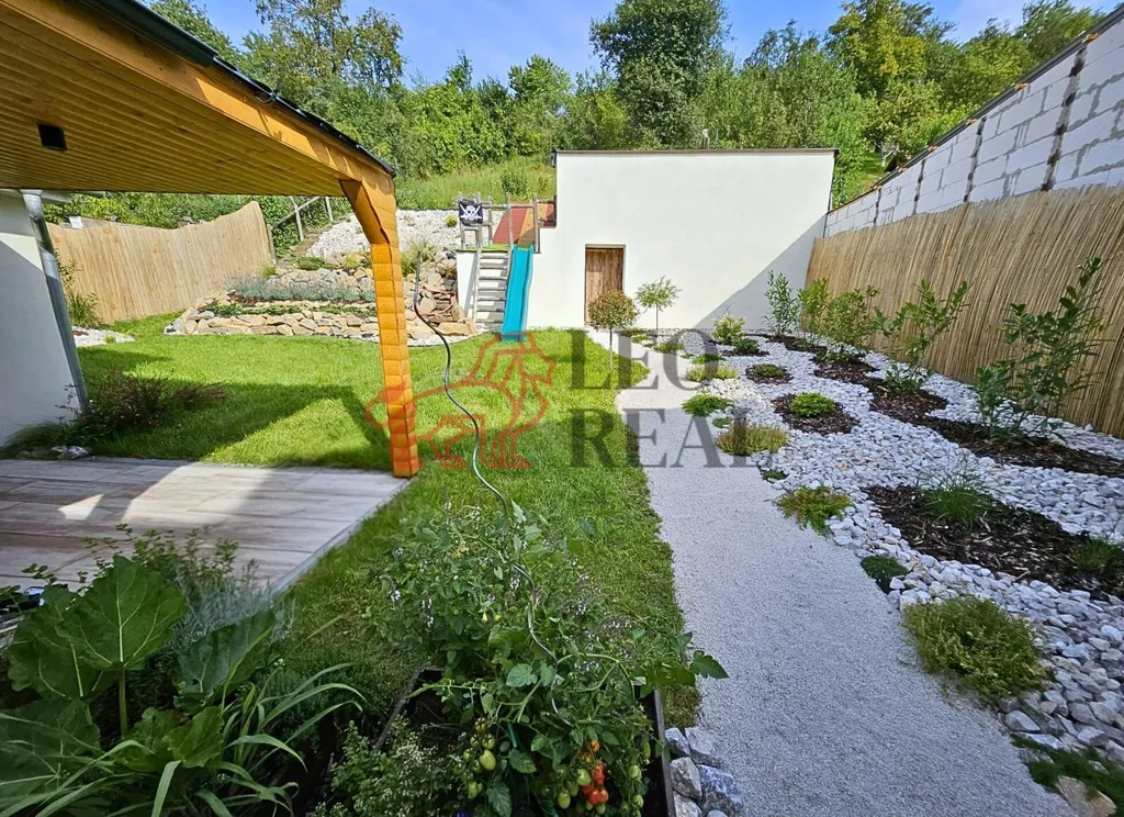 klidovou svahovitou část s výsadbou, ohništěm a výhledem do zeleně