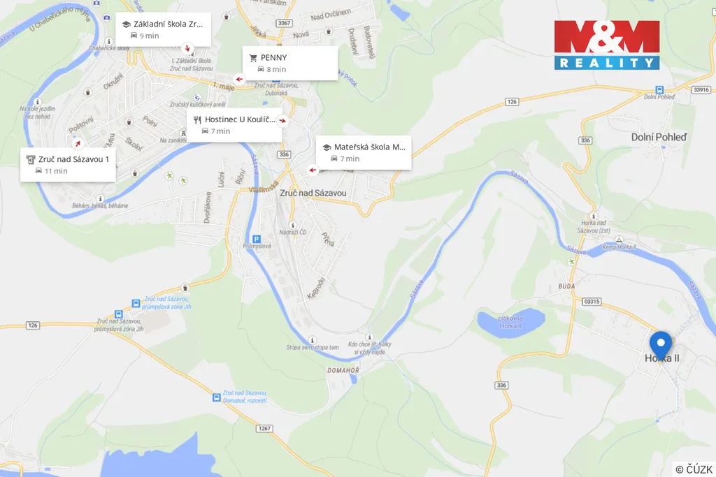 Nabízíme k prodeji rodinný dům v klidné části obce Horka II, katastrální území Horka nad Sázavou. Dům s užitnou plochou 104 m² se nachází na pozemku o přibližné výměře 759 m², jehož přesná velikost bude stanovena po dohodě se zájemcem rozdělením sousedního pozemku. Dispozice domu je 4+1 a je částečně podsklepený – sklep o výměře cca 15 m². Nemovitost je napojena na obecní vodovod, kanalizaci a elektřinu. Komfortní vytápění zajišťuje tepelné čerpadlo do radiátorů, instalované před 4 lety. Velkým benefitem domu je otevřený výhled do okolní krajiny, naproti domu se nachází volný prostor, v blízkosti protéká řeka Sázava. Možnosti koupání a rybaření nabízí pískovna vzdálená cca 1 km. Lokalita je vhodná i pro aktivní odpočinek – cyklostezky a turistické trasy jsou v dosahu. Pro každodenní potřeby je výhodou blízkost Zruče nad Sázavou (cca 5 km). Lokalita poskytuje klidné bydlení s dobrou dostupností – nájezd na dálnici D1, exit 56 Soutice, je vzdálen zhruba 10 minut jízdy autem. Více v RK.