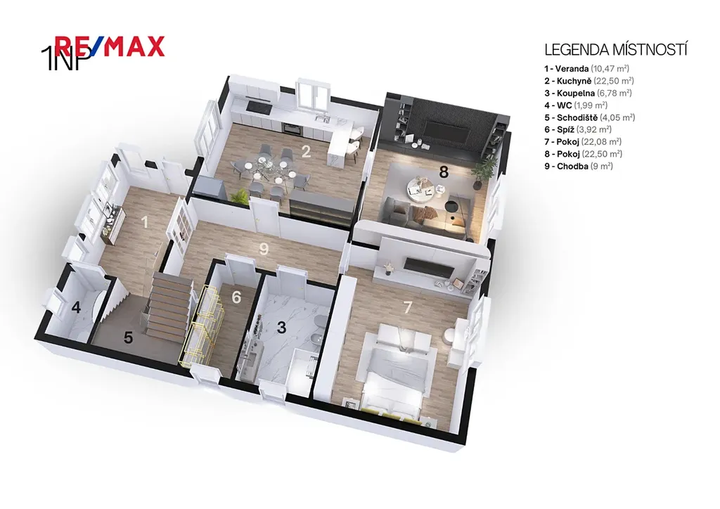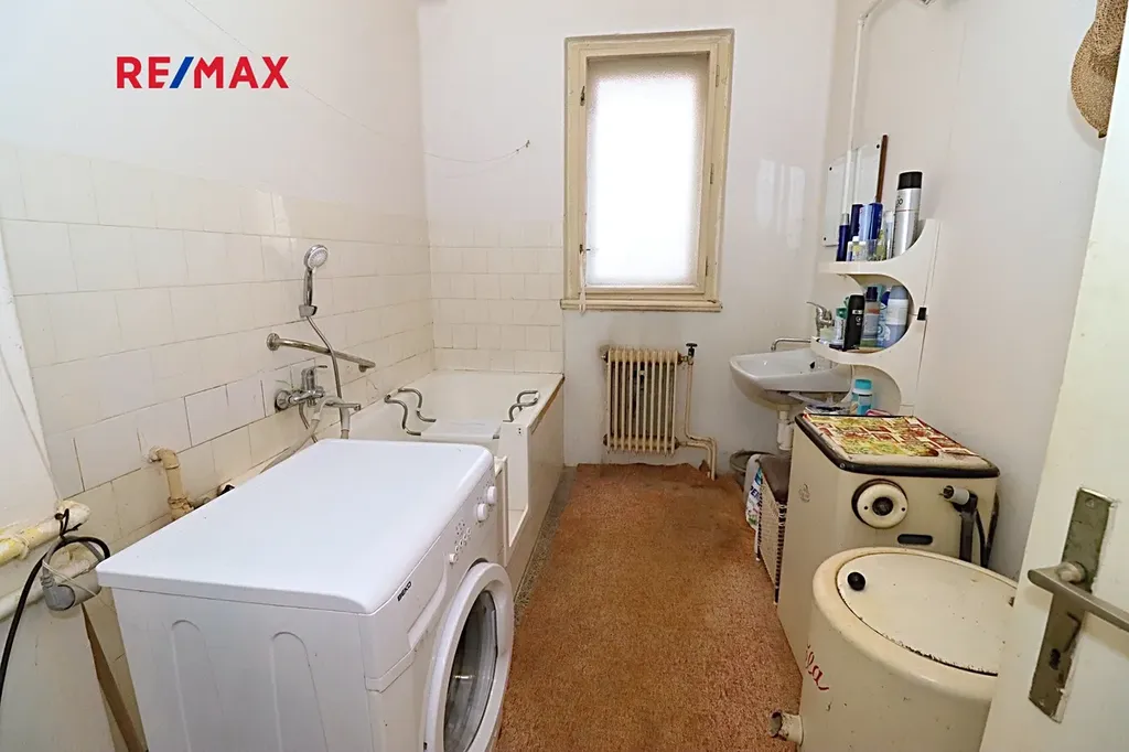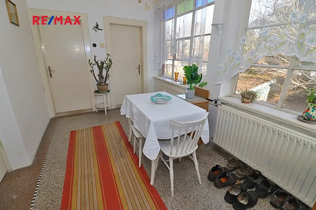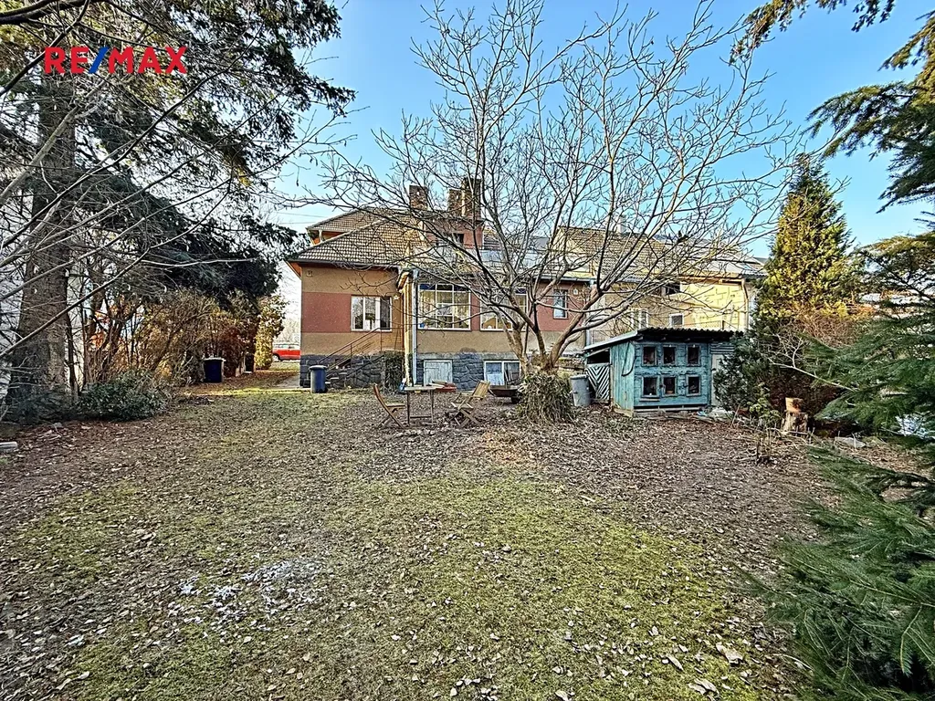 Tento samostatný cihlový dům, postavený na začátku 40. let minulého století, se nachází na prostorném pozemku o rozloze 1.729 m², z čehož zastavěná plocha činí 160 m² včetně samostatné garáže (21 m²). Obytná výměra dvou nadzemních podlaží domu je úctihodných 179,4 m². K tomu je ještě třeba připočíst půdu o výměře 15 m² - ideální pro další obytný pokoj. První podzemní podlaží je technické - je zde místnost pro skladování ovoce a zeleniny s vodárnou, dílna (původně prádelna) a kotelna. Celková výměra podzemní podlaží činí 52,5 m².