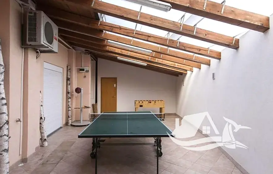 Vila je rozdělena na dva prostorné patrové byty, které dohromady nabízejí šest ložnic, čtyři koupelny, plně vybavené kuchyně a velkorysé obývací prostory. Celková obytná plocha činí přibližně 336 m² a poskytuje dostatek místa pro komfortní rodinné bydlení i vícegenerační využití. Součástí domu jsou také dva balkony, které přinášejí příjemné venkovní zázemí a klidnou atmosféru pro každodenní odpočinek.
