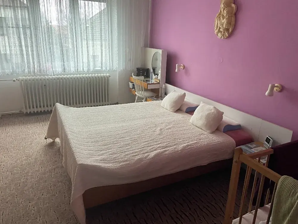 pozemku p.č.32/26, zahrada, o velikosti 556 m2, vše zapsáno na LV č.337 pro k.ú. Tovačov Jedná se o samostatně stojící objekt rodinného domu, částečně podsklepený, se dvěma nadzemními podlažími a částečným podkrovím. Je zděný, střecha je valbová, krytina je z pálené tašky, bleskosvod je instalován, klempířské prvky jsou z pozinkovaného plechu. Fasáda je břízolitová, na přístavbě vápenná hladká. Okna jsou plastová, částečně dřevěná. Vnitřní dveře jsou plné a prosklené, podlahy jsou z dlažeb, koberců, laminátu, PVC a parket. Schody jsou terasové. V domě jsou tři byty. V 1.NP se nachází byt dispozice 1+1, který není využíván. Byt je ve zhoršeném stavu. V bytě je odpojena elektřina, zřejmě je nefunkční rozvod vody. Vybavení kuchyně chybí. V koupelně je vana, teplá voda je z boileru. Vytápění je ústřední. Plynový kotel je společný pro tento byt, a také byt ve 2.NP. V 1.NP je další byt, který se nachází z části v přístavbě, dále označen jako byt č.2. Tento je dispozice 3+1. Kuchyň je s linkou, sporák. Byt je v dobrém stavu, po modernizaci před cca 5 lety. Ve 2.NP se nachází byt dispozice 3+1, dále označován jako byt č.3. V bytě je koupelna s vanou, teplá voda z boileru, kuchyň s linkou, sporák. Byt je v původním stavu z roku 1970, bez větších modernizací. Vytápění v bytě je ústřední, plynový kotel je na chodbě (společný i pro byt 1+1 v 1.NP). S tímto bytem se užívá i další místnost v podkroví. Místnost je napojena na stejné ústřední vytápění, a je celoročně využitelná. Přístup je přes společnou chodbu.