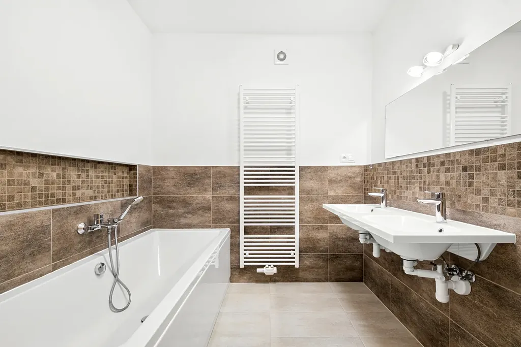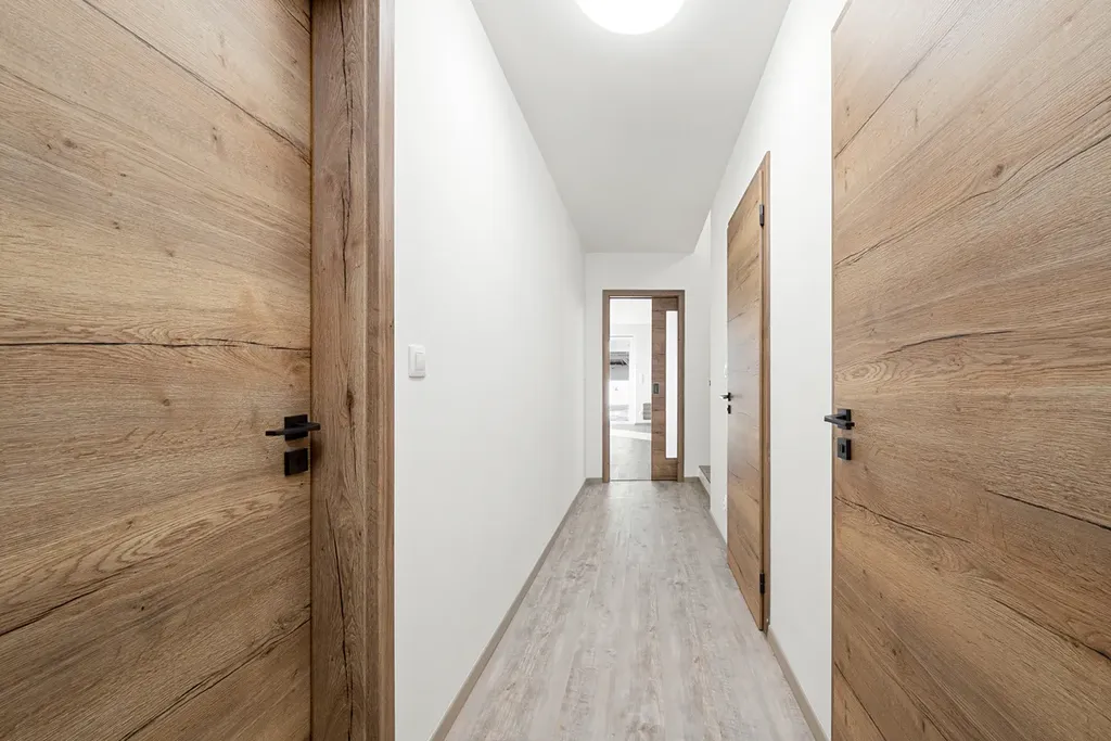 Na podlahách vinyl. Částečně podlahové vytápění v kombinaci s radiátory.
