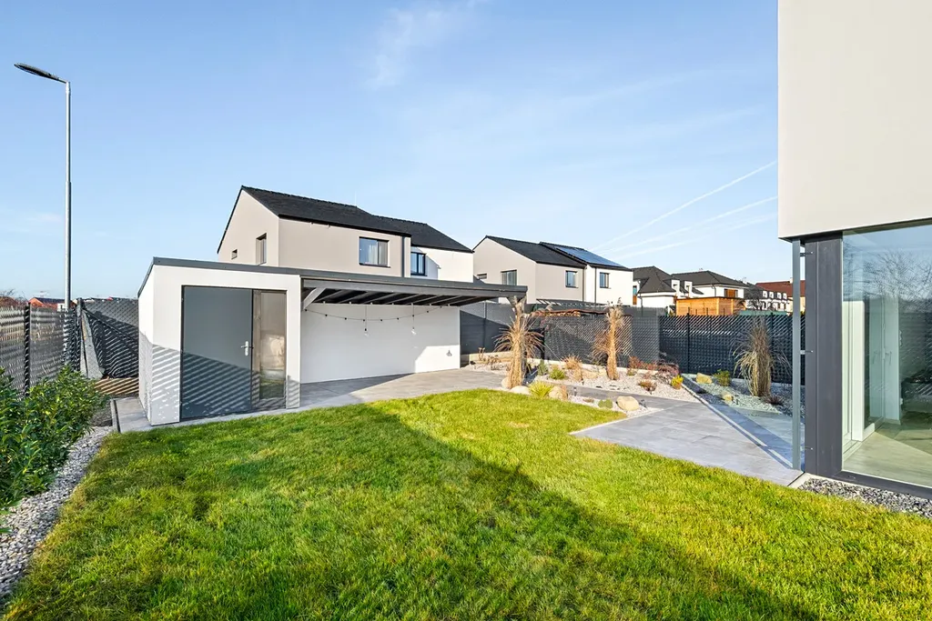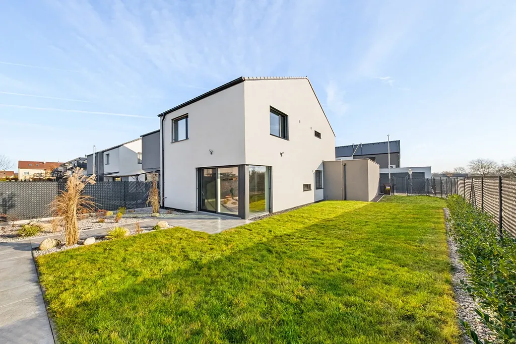 Nabízíme ke koupi novostavbu rodinného domu ve Zloníně. Dům byl kolaudovaný v roce 2022 a majitelé řešili jeho realizaci v nejvyšší kvalitě s přihlédnutím k vlastním potřebám. V domě se nachází 5 ložnic, přičemž jedna je umístěna v přízemí domu společně s prostorným obývacím pokojem s kuchyňským koutem, koupelnou se sprchovým koutem a velkým šatním prostorem u vstupu. Další ložnice jsou koncipovány do prvního patra společně s koupelnou s vanou.