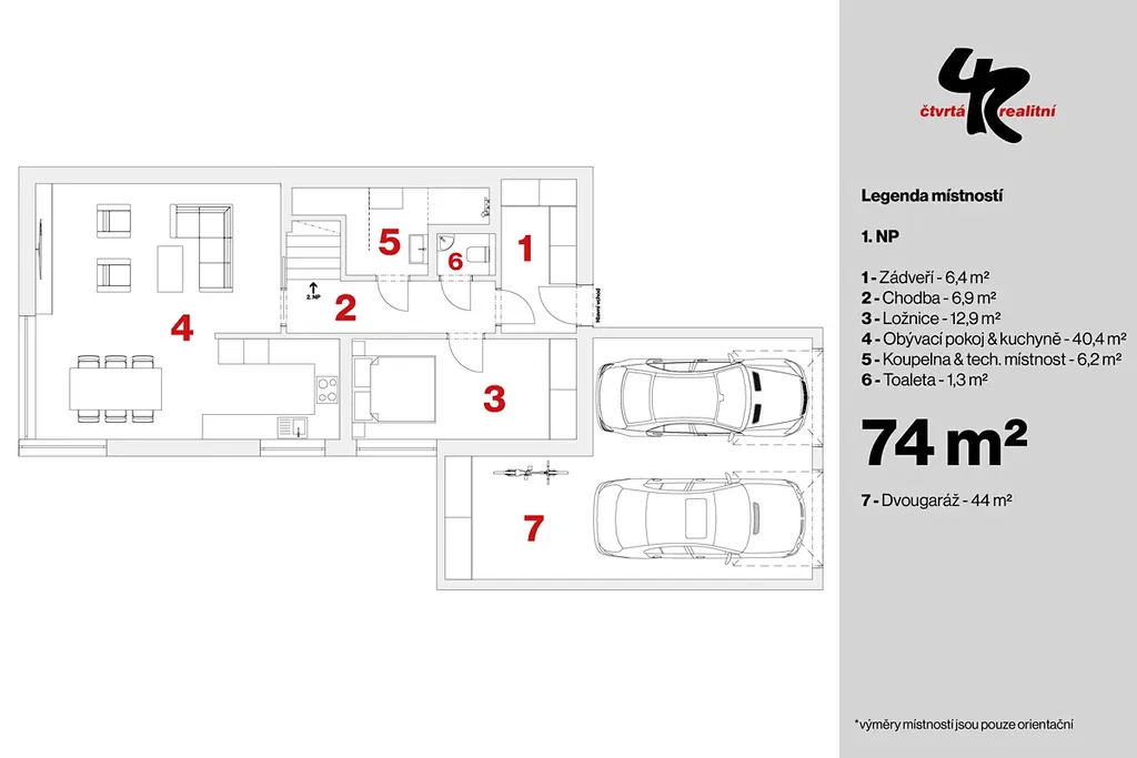 Velká dvougaráž 44m2 s prostorem pro kola, dílnu atd.