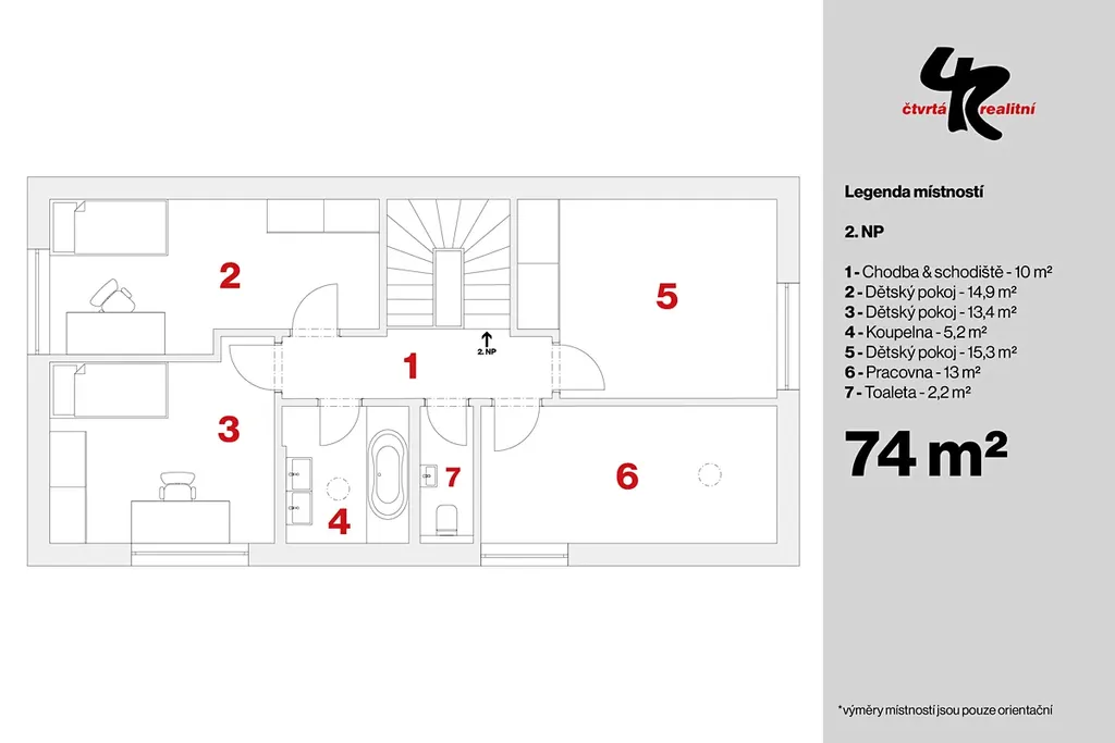 Nabízíme k pronájmu novostavbu rodinného domu ve Zloníně. Dům byl kolaudovaný v roce 2022 a majitelé řešili jeho realizaci v nejvyšší kvalitě s přihlédnutím k vlastním potřebám. V domě se nachází 5 ložnic, přičemž jedna je umístěna v přízemí domu společně s prostorným obývacím pokojem s kuchyňským koutem, koupelnou se sprchovým koutem a velkým šatním prostorem u vstupu. Další ložnice jsou koncipovány do prvního patra společně s koupelnou s vanou.