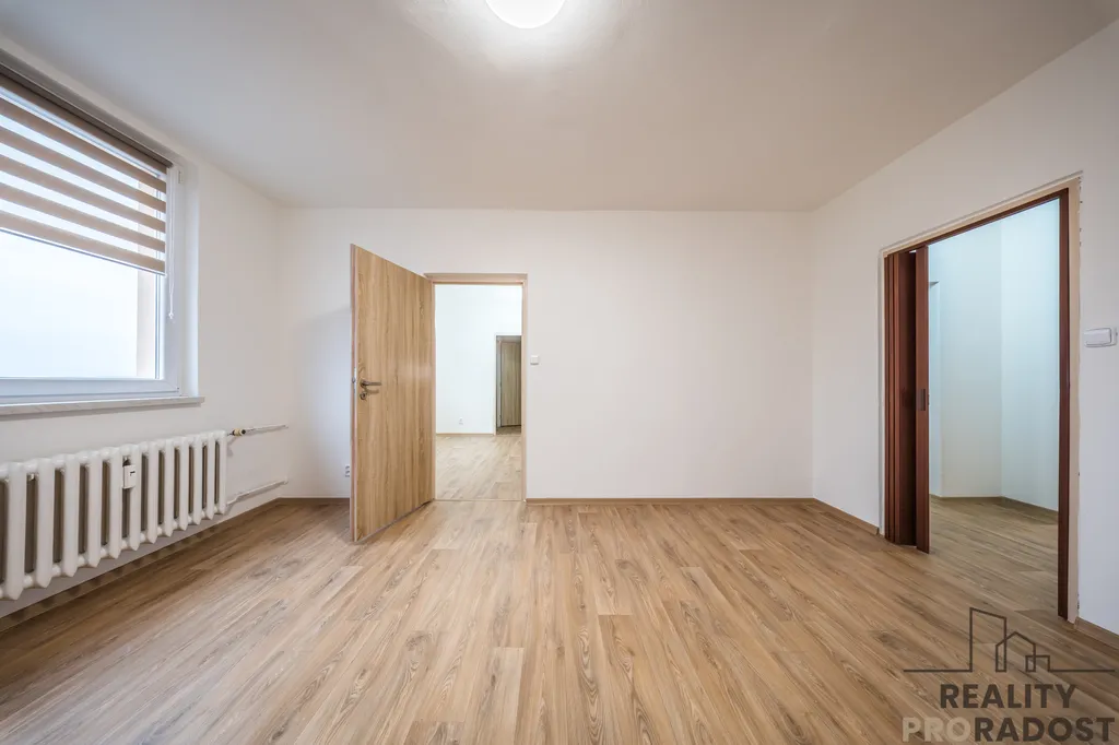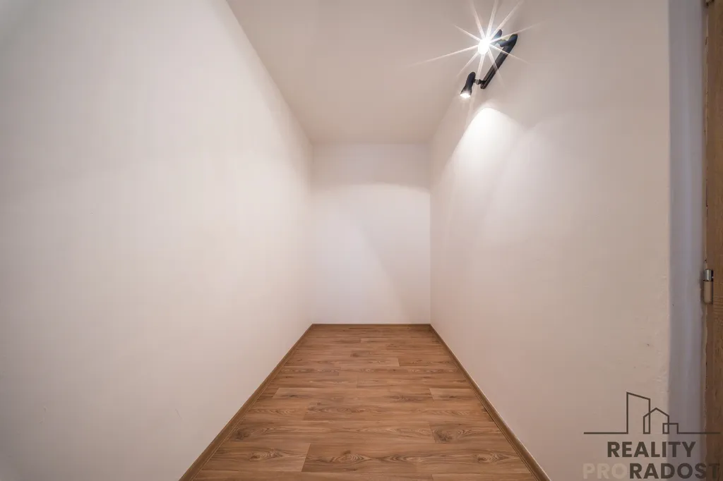 Byt se pyšní užitnou plochou cca 74 m² a balkonem o velikosti cca 6 m², což poskytuje dostatek prostoru pro pohodlné bydlení. Dispozičně je velmi dobře řešený, jelikož každý pokoj má vlastní vstup z centrální, prostorné vstupní chodby. Kromě toho byt disponuje dvěma šatnami a komorou, které nabízejí další úložný prostor pro vaše věci, nebo lze využít jako další pokoj – pracovnu. V přízemí bytového domu je taktéž úložný prostor.