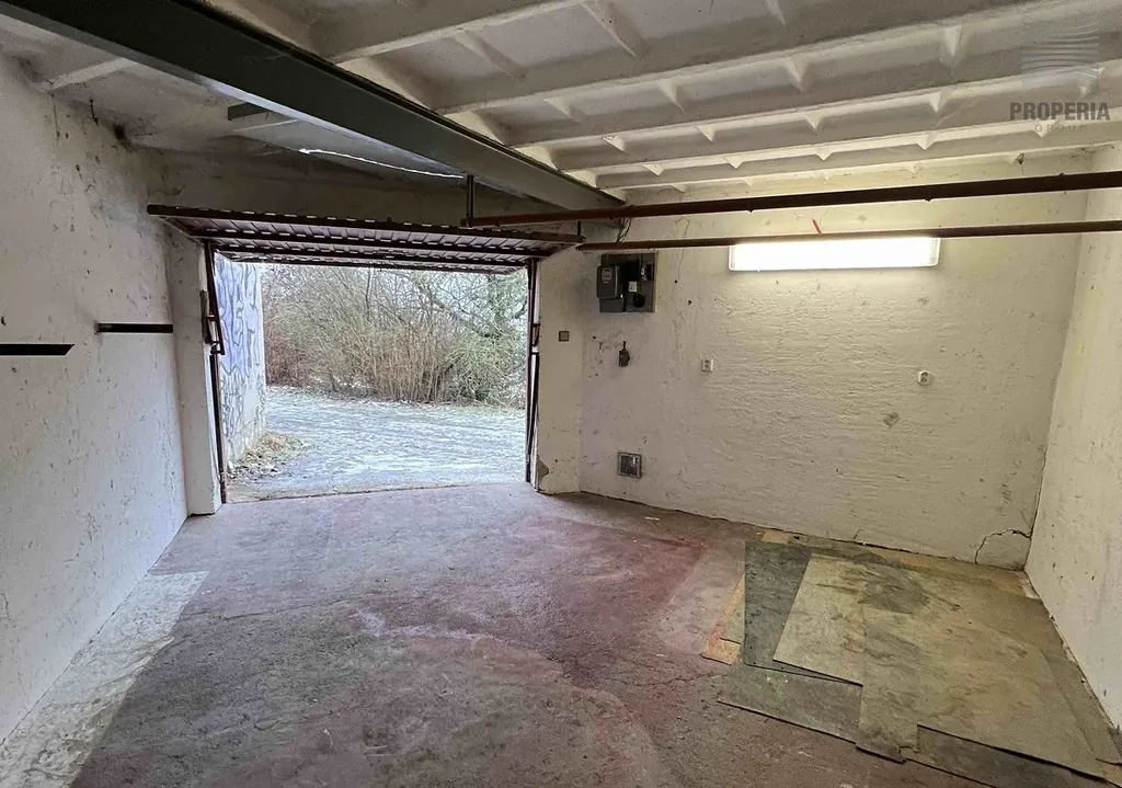 Garáž je atypická a větší než standard, díky své krajní poloze má rozšířený půdorys, který umožňuje nejen pohodlné parkování osobního vozu či SUV, ale také dostatek prostoru pro uložení kol, menší motorky, regálů nebo vybavení dílny.
