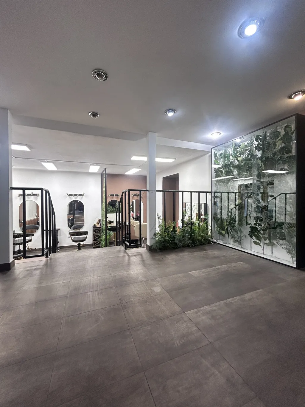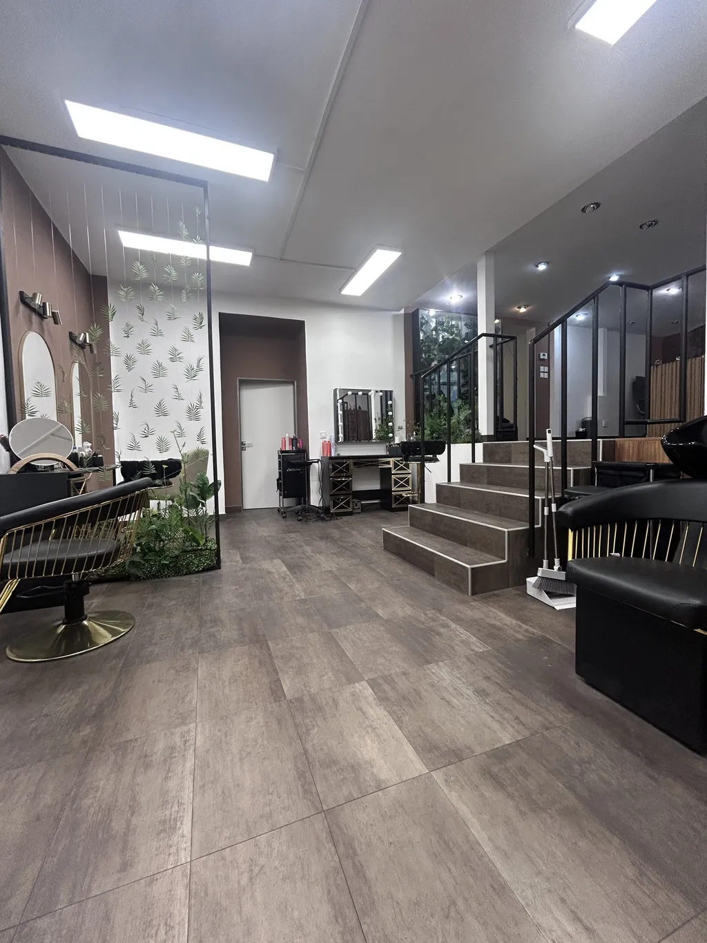 hlavní provozní prostor s kadeřnictvím, zázemí pro míchání barev a sklad