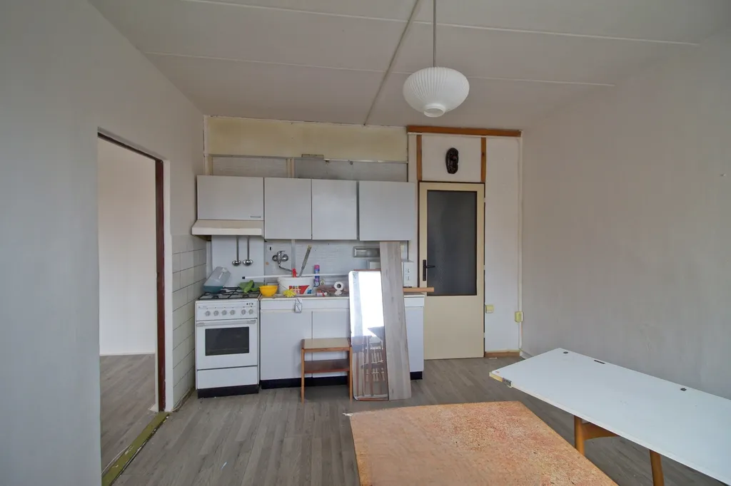 Byt se nachází v udržovaném stavu. Koupelna i kuchyňská linka jsou původní, avšak zachovalé. Kuchyně je vybavena plynovým sporákem a digestoří, praktickým bonusem je také prostorná spíž. Lodžie je umístěna v mezipatře domu a je přístupná ze společných prostor.