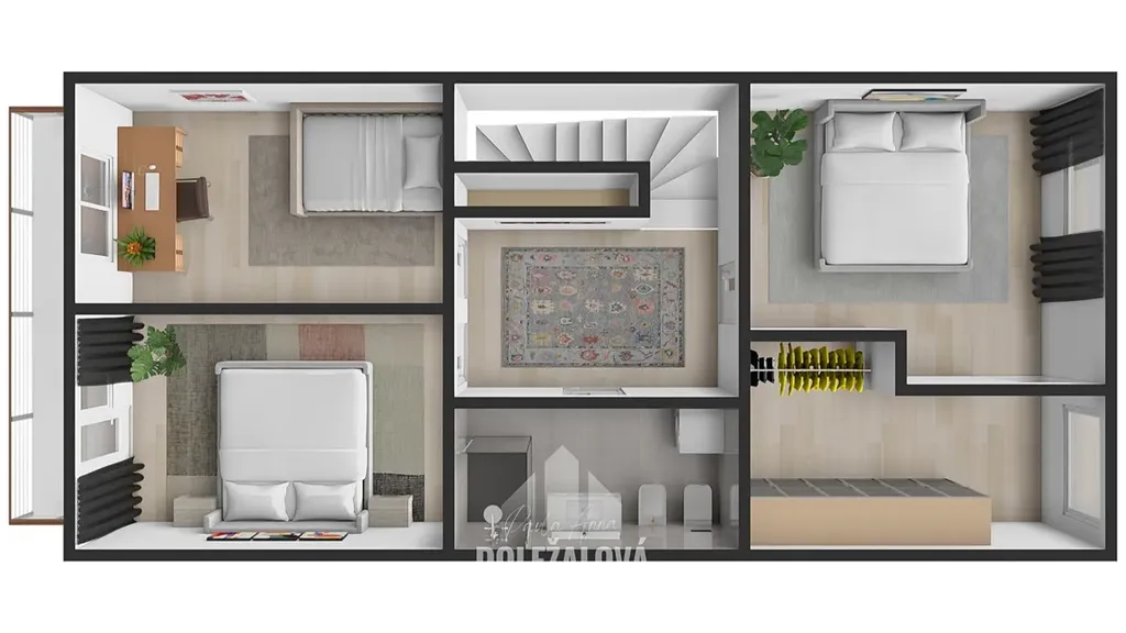 • tři ložnice, šatna u hlavní ložnice, lodžie na jižní stranu