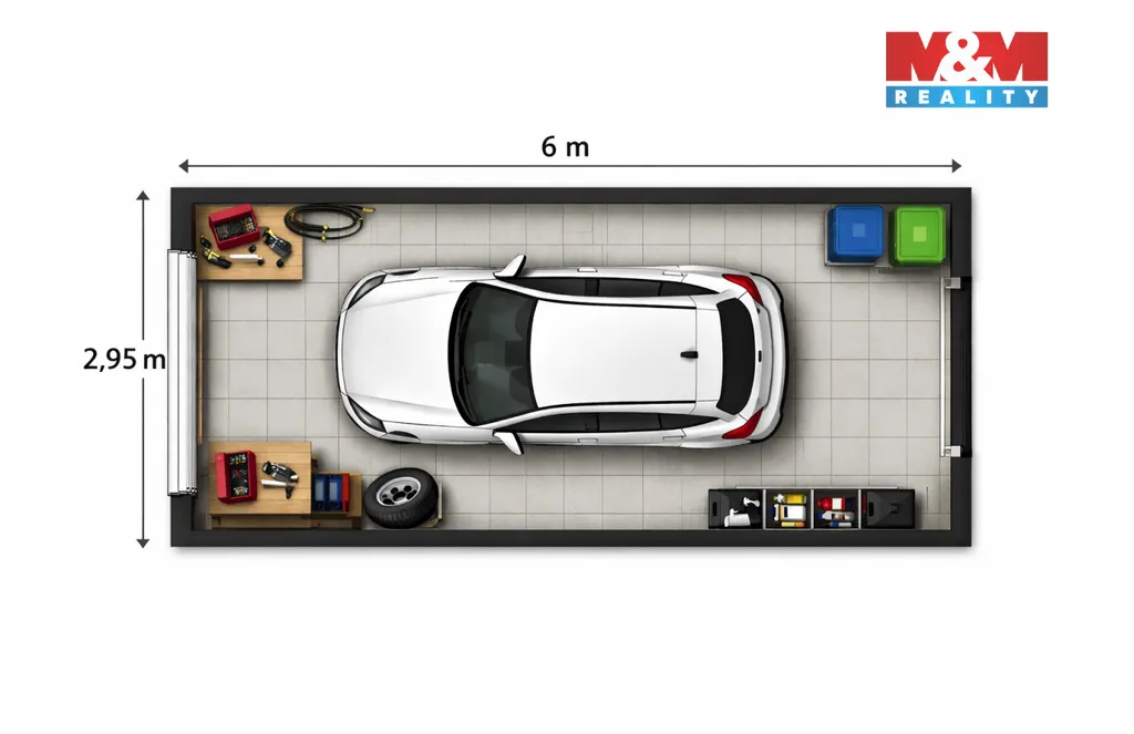Garáž je ve dobrém technickém stavu a je vhodná jak pro parkování osobního automobilu, tak i jako bezpečný úložný prostor. Do garáže je zavedena elektřina, což umožňuje pohodlné využití například pro drobné práce či skladování. Samozřejmostí je snadný přístup a bezproblémový příjezd.