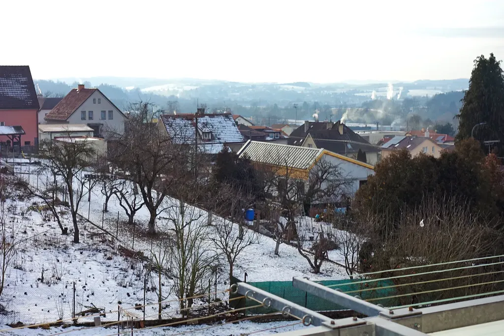 Okna kuchyně, pokoje a koupelny jsou orientována na severovýchod, okna obývacího pokoje, ložnice s balkonem jsou orientována na jihozápad s výhledem do okolí na Poříčí nad Sázavou. K příslušenství bytu náleží suterénní zděná sklepní koje s oknem.Byt je umístěn v klidné lokalitě na malém sídlišti obklopeným rodinnými domy, s blízkostí řeky Sázavy a okolní přírody.