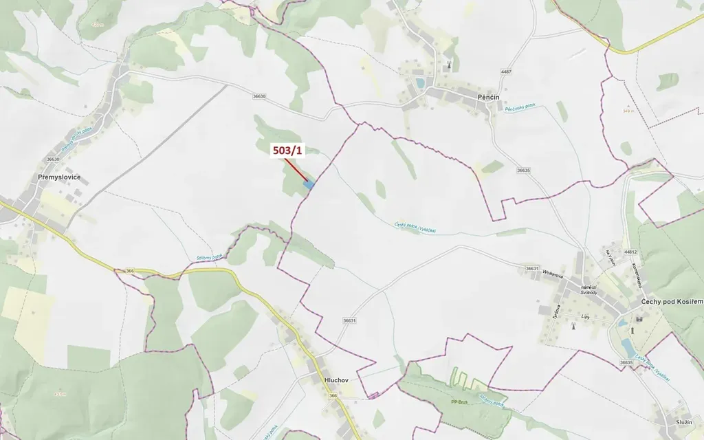 Lesní pozemek o výměře 7 049 m2, parcelní číslo 503/1, podíl 1/1, katastrální území Přemyslovice, obec Přemyslovice, obec s rozšířenou působností Prostějov, okres Prostějov, Olomoucký kraj. Po těžbě.