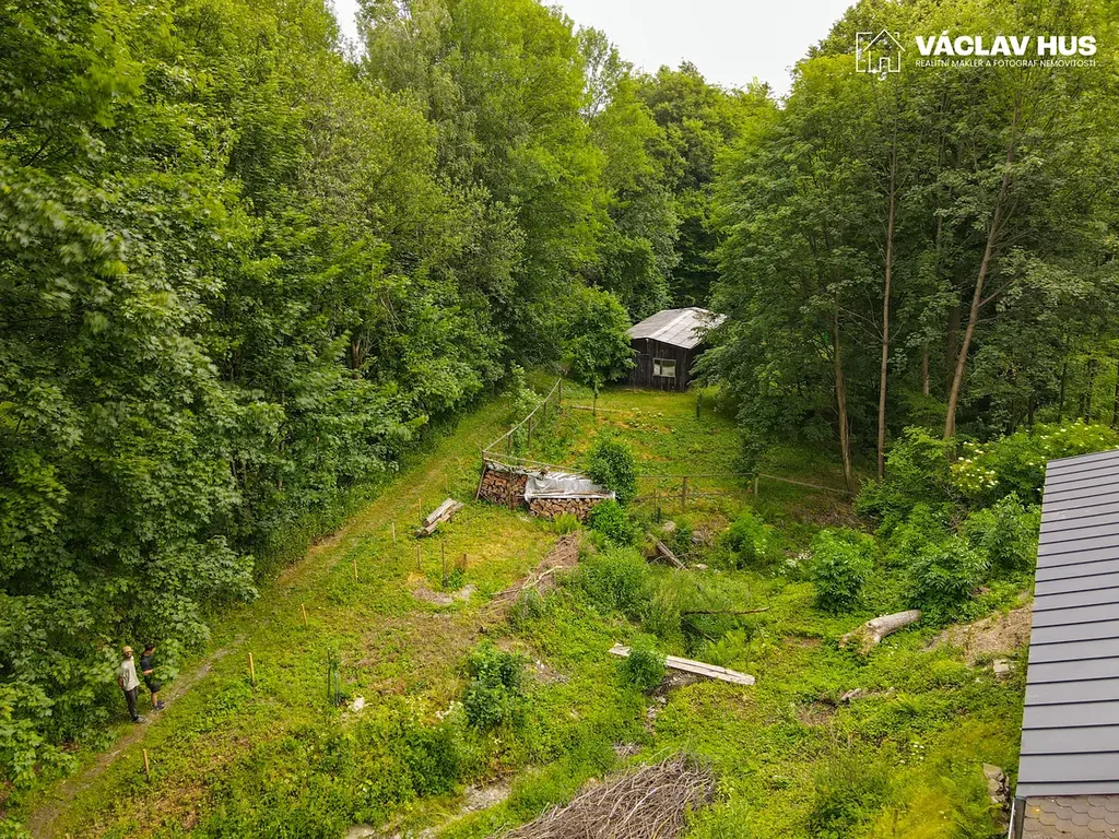 Na pozemku jsou dvě stodoly, jedna u domu s krytým parkovacím místem, garáží, dílnou a využitelným podkrovím, druhá stodola je určená pro úschovu zemědělské techniky a zvířata. Pozemkem protéká malý potůček.