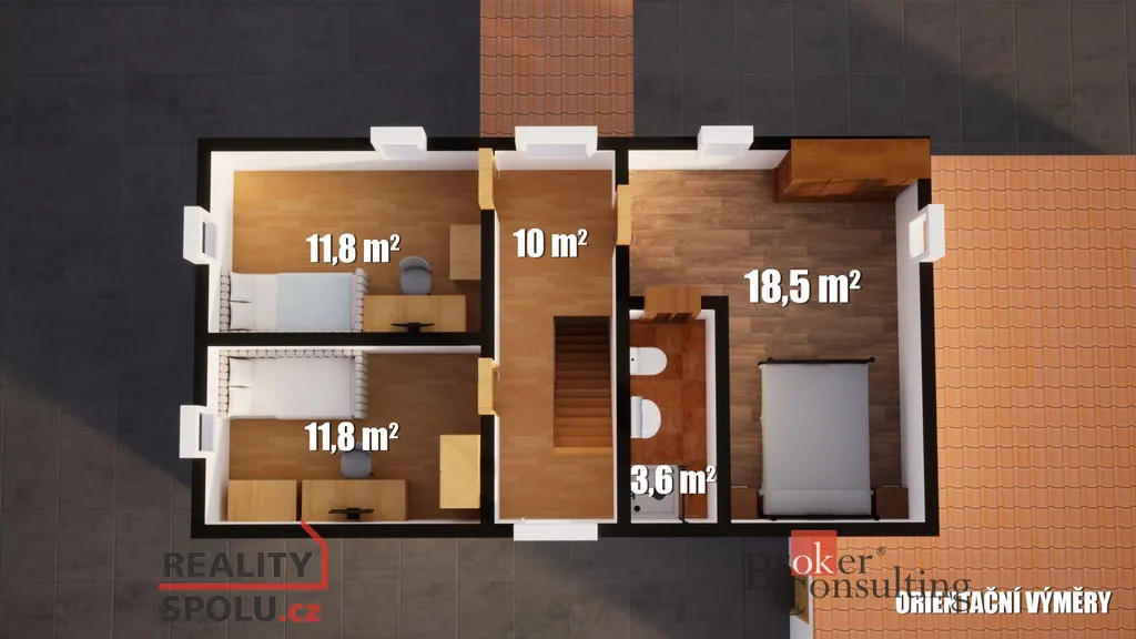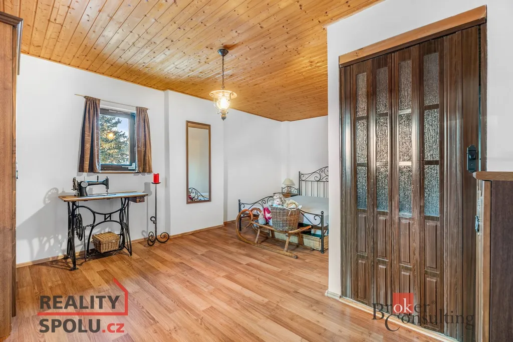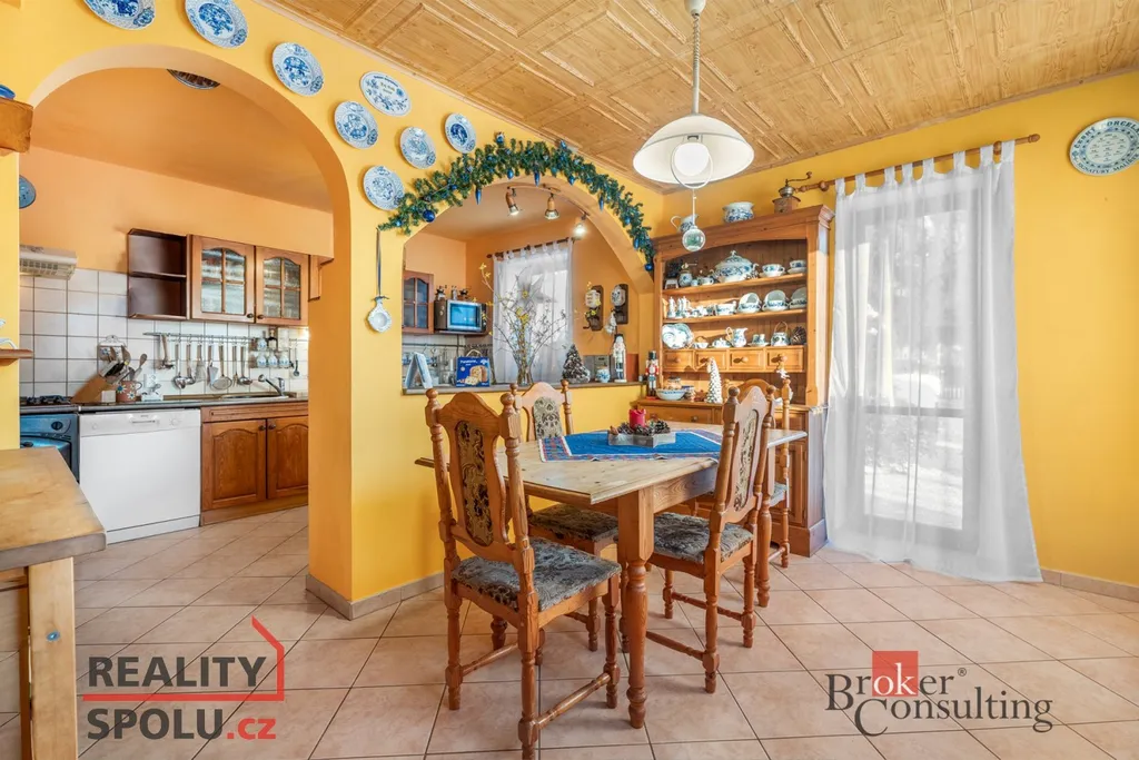 V přízemí se nachází prostorný a světlý obývací pokoj, který tvoří srdce celého domu. Dále se zde nachází kuchyň s jídelnou a spíží, koupelna s vanou i sprchovým koutem a oddělené WC. V patře je umístěna ložnice se samostatnou koupelnou, což zajišťuje maximální komfort a soukromí. K dispozici tu jsou ještě 2 samostatné pokoje. Dům je podsklepen.