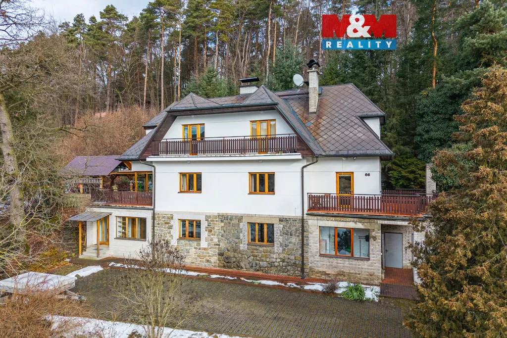 Exkluzivně nabízíme k prodeji rodinný dům o dispozici 10 + 2, užitné plochy 312 m2 v Mnichovicích u Říčan, na místě, které je skutečnou oázou klidu. Třípatrový dům stojí na pozemku o velikosti 2428 m² a nabízí výjimečný prostor i soukromí. Nemovitost je koncipována jako třígenerační bydlení se třemi samostatnými bytovými jednotkami a deseti pokoji. Každé patro má dostatek světla, příjemnou atmosféru a interiér doplněný dřevěnými podlahami, které podtrhují nadčasový charakter domu. Kompletní rekonstrukce z roku 2002 dala nemovitosti nový život. Součástí domu je zimní zahrada, krb a balkon s výhledem na rybník, který ocení zejména nadšenci rybolovu. Orientace domu na jih a jihozápad zajišťuje slunce po celý den a nabízí ideální podmínky pro využití fotovoltaiky. Zahrada s pergolou je místem pro relaxaci i letní grilování. K domu náleží garáž a další parkovací místa na pozemku. Toto místo nabízí domov s atmosférou, kam se budete rádi vracet.