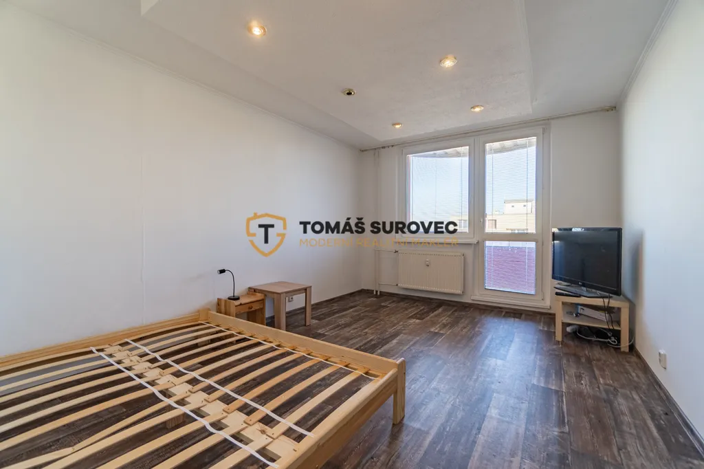 Dispozice nabízí vstupní chodbu s vestavěnými skříněmi, zděnou koupelnu se sprchovým koutem, WC, umyvadlem a pračkou, a dále obytný prostor spojený s kuchyňským koutem. Z pokoje je přímý vstup na balkon orientovaný do klidného vnitrobloku.