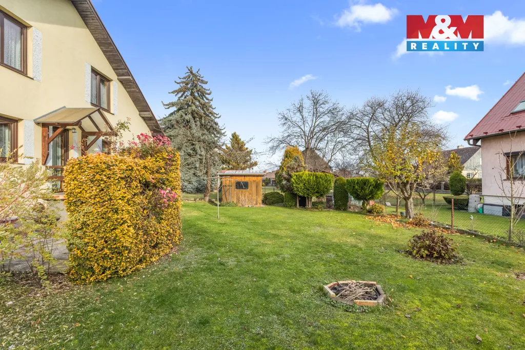 Dům s dispozicí 4+1 nabízí dvě ložnice, obývací pokoj, jídelnu, ze které je vstup na zahradu, kuchyň, koupelnu, dvě toalety, dvě komory, sklep a garáž. Před několika lety prošla nemovitost rekonstrukcí, která zahrnovala výměnu oken, zateplení obvodových stěn a půdy. Dům je napojen na veškeré IS, ohřev vody zajišťuje el. bojler, vytápění plynový kotel a krbová kamna. Zahrada o velikosti 392 m² s malým zahradním domkem vám od jara do podzimu nabídne dostatek prostoru pro odpočinek. V obci se nachází mateřská i základní škola, pošta, praktický lékař, Dům služeb, obchod s potravinami, tenisové kurty, fotbalové hřiště, dětské hřiště, in-line dráha a nádherný rybník. Velikým benefitem je skvělá dostupnost do Prahy, pravidelná autobusová linka vás za 25 minut doveze na pražského metro Nádraží Veleslavín. (PENB - F). Pro více informací a prohlídku kontaktujte makléře.