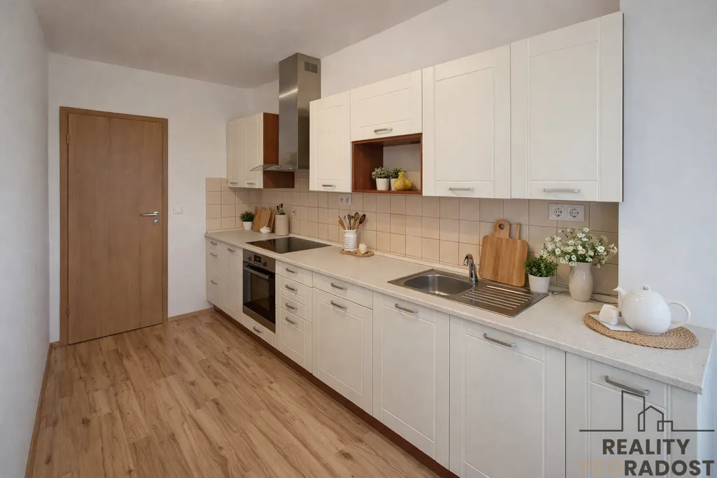 Při vstupu do bytu se ocitnete v prostorné a světlé obytné kuchyni, která je vybavena moderní kuchyňskou linkou s vestavěnými spotřebiči. Z této centrální části bytu vede vstup do samostatné neprůchozí ložnice, která poskytuje klid a soukromí pro odpočinek. Koupelna je vybavena sprchovým koutem a závěsným WC, což přispívá k pohodlnému bydlení. Vysoký komfort zajišťuje vytápění a ohřev vody pomocí plynového kotle, který poskytuje efektivní a úspornou možnost vytápění během chladných měsíců.