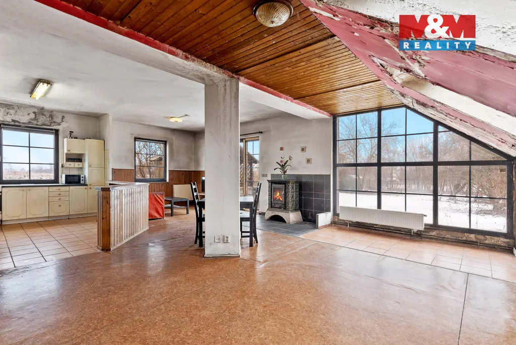 Technický stav nemovitosti vyžaduje řešení – střešní krytina je poškozená a dochází k dlouhodobému zatékání do objektu, je nutné připojení na veřejnou kanalizaci a částečná oprava elektroinstalace.