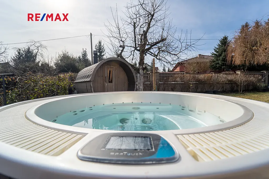 Na pozemku se nachází vířivka a sauna, které zajišťují dokonalý relax a odpočinek po náročném dni. Na pozemku je montovaný domek na uskladnění spousty dalších věcí.