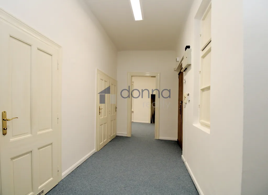 Jedná se o čtyři místnosti + velká hala + kuchyňka s myčkou a malou lednicí + koupelna se sprchou + toaleta). Prostory jsou bez nábytku (s výjimkou 1 kanceláře, kde jsou vestavěné skříně - viz foto). V jedné z místností je také vstup do malé komory.