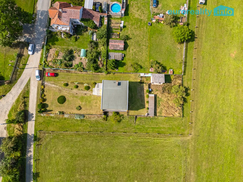 Celková výměra pozemku činí 1 487 m² a nabízí dostatek prostoru pro zahradu, relaxační zónu i rodinné zázemí. Vytápění je řešeno kotlem na tuhá paliva, ohřev vody bojlerem, odpad sveden do septiku.