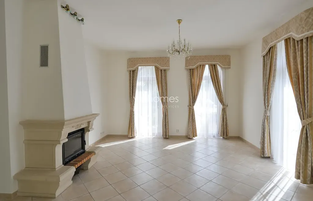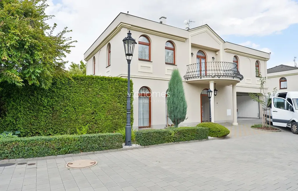 Klimatizace, podlahové topení v celém domě, zabezpečovací zařízení rozdělené na jednotlivé zóny (noční režim atd.) s připojením na pult centrální ochrany. Videotelefon propojen s vchodem a vjezdem do areálu. Automatické zavlažování zahrady. Na zahradě bazén 5 x 3 x 1,5 m, podvodní osvětlení, vyhřívání, zařízení pro plavání proti proudu vody. Integrovaná garáž pro dva vozy - vrata a vjezdová brána na dálkové ovládání. Nádherný výhled na unikátní scenérie Šáreckého údolí, ideální místo pro rodinný život. Nájemné Fixní poplatky za údržbu zahrady a bazénu, vodu a bezpečnostní službu: 12.000 Kč / měsíc. Elektřina a plyn: 15.000 Kč / měsíc. K dispozici od 16.2.2026.