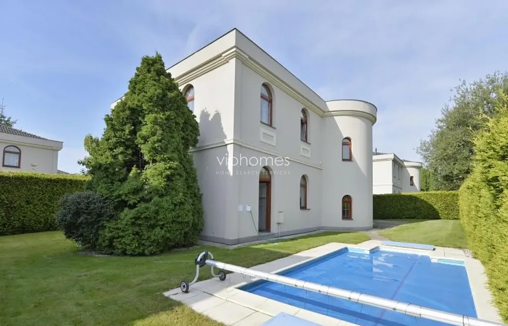 Klimatizace, podlahové topení v celém domě, zabezpečovací zařízení rozdělené na jednotlivé zóny (noční režim atd.) s připojením na pult centrální ochrany. Videotelefon propojen s vchodem a vjezdem do areálu. Automatické zavlažování zahrady. Na zahradě bazén 5 x 3 x 1,5 m, podvodní osvětlení, vyhřívání, zařízení pro plavání proti proudu vody. Integrovaná garáž pro dva vozy - vrata a vjezdová brána na dálkové ovládání. Nádherný výhled na unikátní scenérie Šáreckého údolí, ideální místo pro rodinný život. Nájemné 110 000 Kč / 4 519 EUR. Fixní poplatky za údržbu zahrady a bazénu, vodu a bezpečnostní službu: 12.000 Kč / měsíc. Elektřina a plyn: 15.000 Kč / měsíc. K dispozici od 31.3.2026.