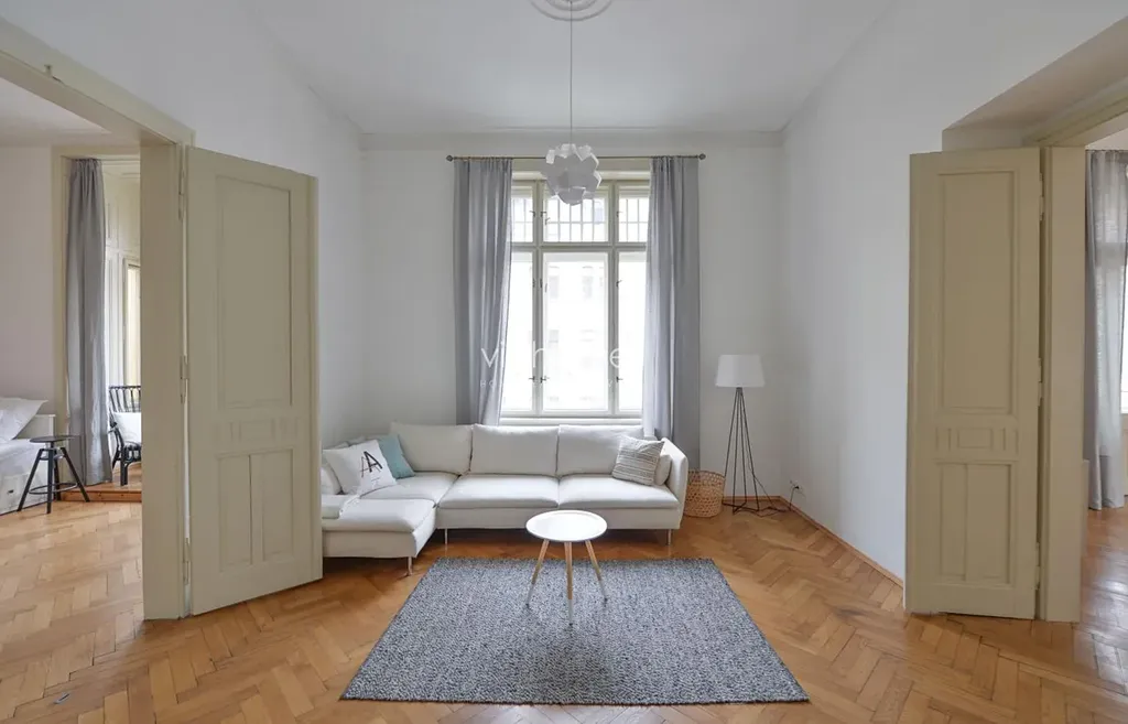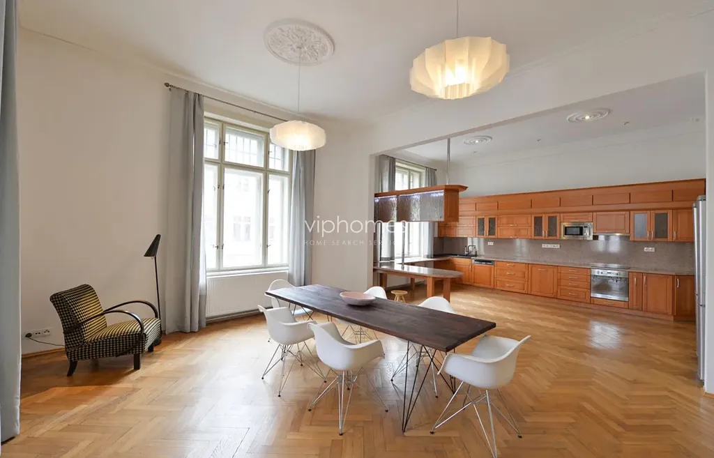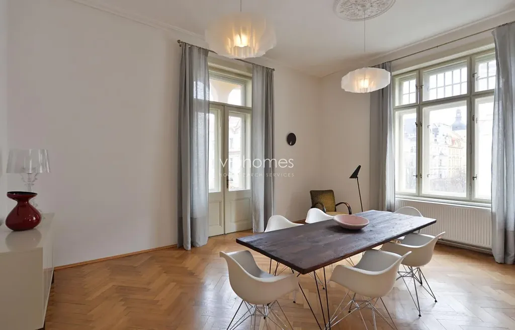 Velkoryse řešený byt 5+kk s vysokou úrovní vnitřního komfortu situovaný ve 3. patře secesního domu v exkluzivní Pařížské ulici. V nejbližším okolí je spousta v těch nejlepších restaurací, kaváren, barů a butiků světoznámých designérů. Rezidenční budova je po celkové rekonstrukci s důrazem na zachování tradiční, historické architektury.