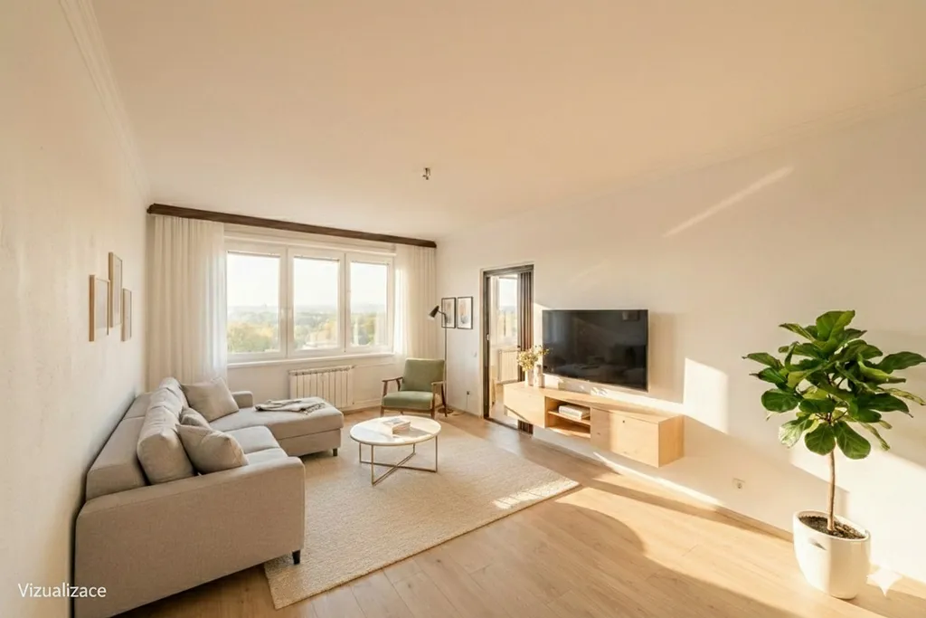 Byt o dispozici 3+1 a výměře 65 m² nabízí promyšlené uspořádání, dvě neprůchozí ložnice, světlý obývací pokoj, praktickou kuchyni a prostornou chodbu s možností úložných prostor. K tomu navíc patří zasklená lodžie (3,7 m²) s nádherným výhledem, který vás potěší při ranní kávě i večerním odpočinku. Byt je situovaný na dvě světové strany, takže je prosvětlený po celý den.