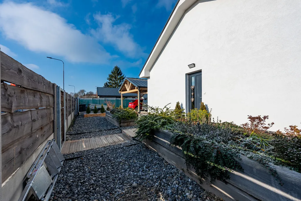 Dům je samostatně stojící a jeho cihlová konstrukce zajišťuje pevnost a odolnost. Tento rodinný dům byl postaven a zkolaudován v roce 2023, což přináší moderní a aktuální standard bydlení. Stav objektu je velmi dobrý, což přispívá k pohodlnému a bezproblémovému bydlení.