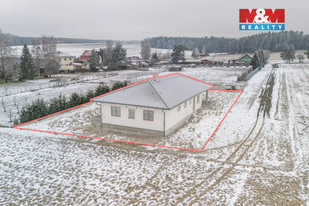 Nabízíme k prodeji rodinný dům ve výstavbě, situovaný v klidné části obce s dostatkem soukromí a krásnou okolní přírodou. Jednopodlažní dům je navržen pro pohodlné rodinné bydlení a nabízí užitnou plochu 120 m², celkem 6 místností a prostornou terasu o velikosti 43 m². Dům stojí na pozemku o rozloze 1001 m² a je v osobním vlastnictví, výstavba započala v roce 2018. Nemovitost je připravena na vlastní vrtanou studnu, domácí ČOV s akumulací vyčištěné vody a vsakem na pozemku. Elektřina je již přivedena, elektrický pilíř se nachází na hranici pozemku. Vytápění je navržené podlahovým topením v kombinaci s krbovými kamny, ohřev vody zajišťuje bojler. Parkování je možné přímo na pozemku, příjezd po zpevněné obecní komunikaci. Lokalita je ideální pro klidné bydlení i aktivní životní styl – cykloturistika, jízda na koni a pobyt v přírodě, autobusové spojení v dosahu. Pokud hledáte dům, kde si interiér vytvoříte podle sebe tak toto je ideální volba. Pro více informací kontaktujte makléře!