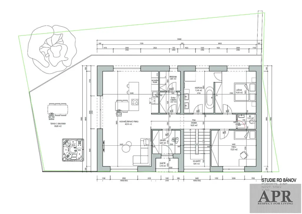 Zprostředkujeme Vám exkluzivní prodej zděného, volně stojícího rodinného domu o velikosti 4+kk, 243 m2v Bánově. Součástí vedené ceny, která již zahrnuje DPH, je dům na klíč, inženýrské sítě včetně připojeného místa EDG (EON), mimo plynu, příjezdová komunikace, veškeré projektové práce a stavební povolení, kolaudace, také dvou parkovacích míst ve vlastní garáži, základního vybavení, jako je kuchyňská linka na míru včetně spotřebičů, vestavné skříně, podlahy, dveře, zárubně, osvětlení, sanita v koupelně. Pozemek o rozloze 292 m2 je na klidném místě obce. Dle územního plánu je schválen pro rodinné bydlení. Jedná se o zděnou stavbu a nabízí se ve variantě na klíč. Topení je řešeno nízkonákladovým topením na elektřinu ve variantě A. Varianta B je podlahové topení plynové. Uvedená cena domu obsahuje základovou desku, DPH a stavba bude provedena na klíč a předána po kolaudaci k okamžitému užívání.
