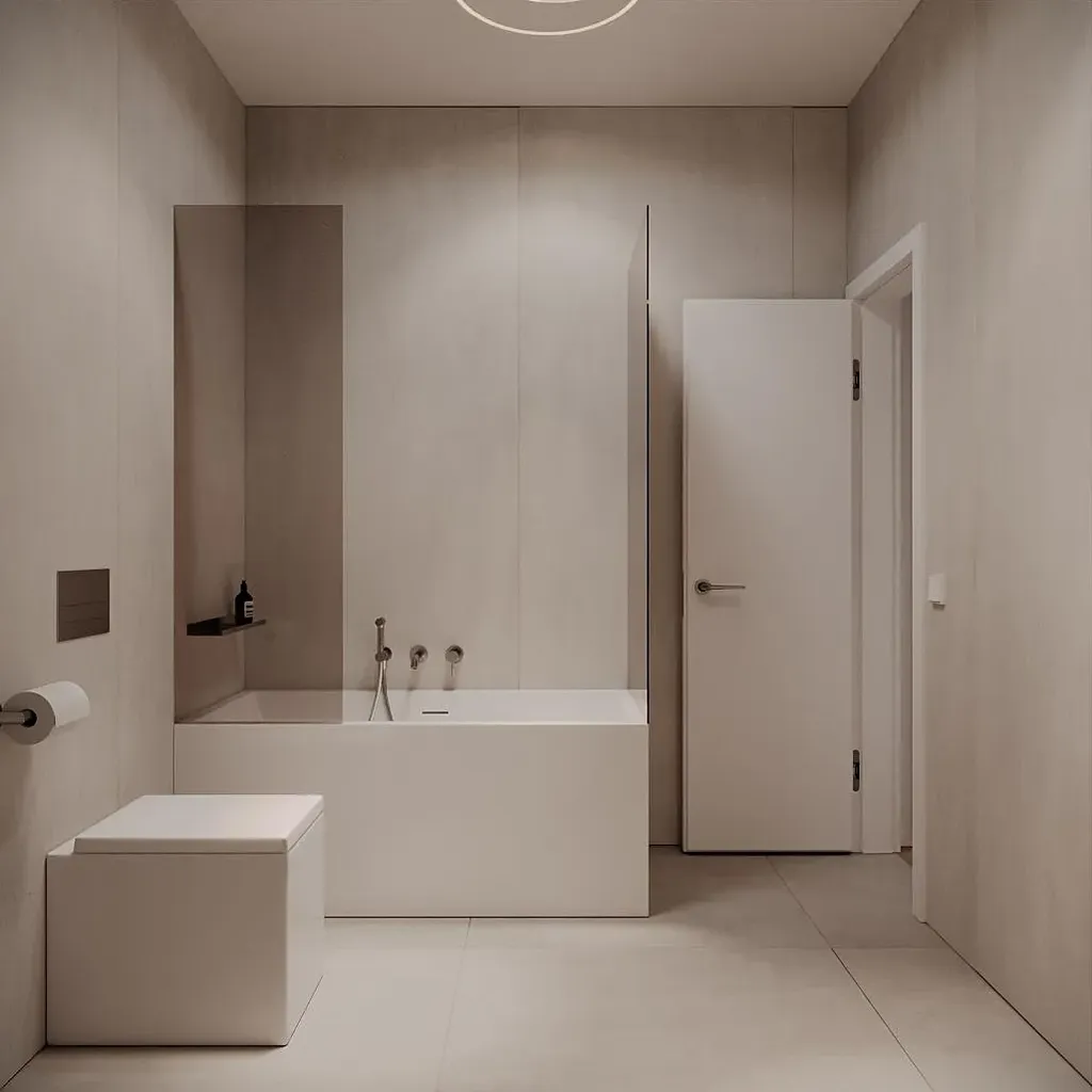 Koupelna je vybavena sprchovým koutem, umyvadlem a toaletou. V bytě se nachází také praktické vestavěné úložné prvky. Celková dispozice působí svěže, funkčně a nabízí dostatek pohodlí pro jednotlivce i pár.