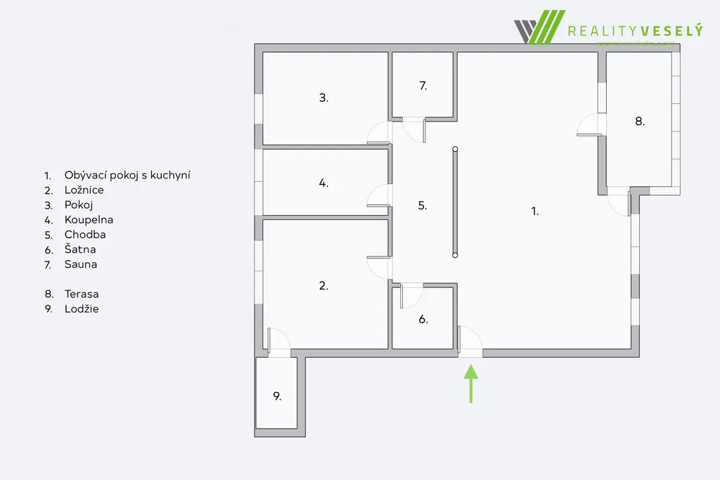- velkorysá šatna a množství vestavěných skříní, které zajišťují nadstandardní úložné prostory