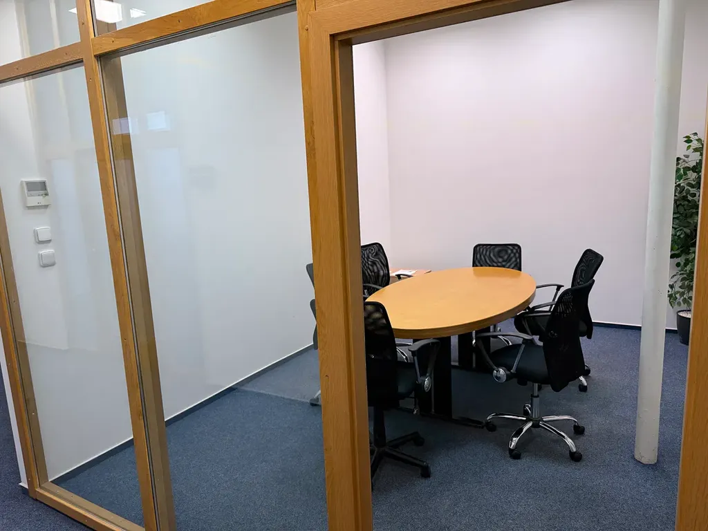• Jednací místnost 16 m² – tabule / projekční plocha (cca 4.880 Kč / měs. vč. služeb + DPH)