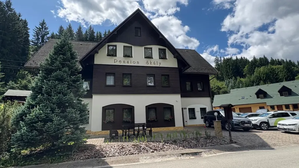 Exkluzivně Vám nabízíme k prodeji zavedený rodinný "pension SKÁLY" o užitné ploše 753m², který se nachází cca 300 m od brány Teplicko-Adršpašských skal. Tato lokalita je velmi vyhledávaná a hojně navštěvovaná v Královehradeckém kraji. Pension nabízí možnost pro skupinové či individuální rekreace, ale také i pro konání svateb, rodinných oslav nebo firemních akcí. V současné době je provozován a udržován k celoročnímu ubytování. K nemovitosti náleží parkoviště a terasovitý pozemek o výměře 2150 m², který skýtá prostor pro možný rozvoj dalších rekreačních služeb (wellness, bazén, sauny). Ubytovací kapacita pensionu v současné době je 36 míst a prodává se včetně veškerého vybavení.
