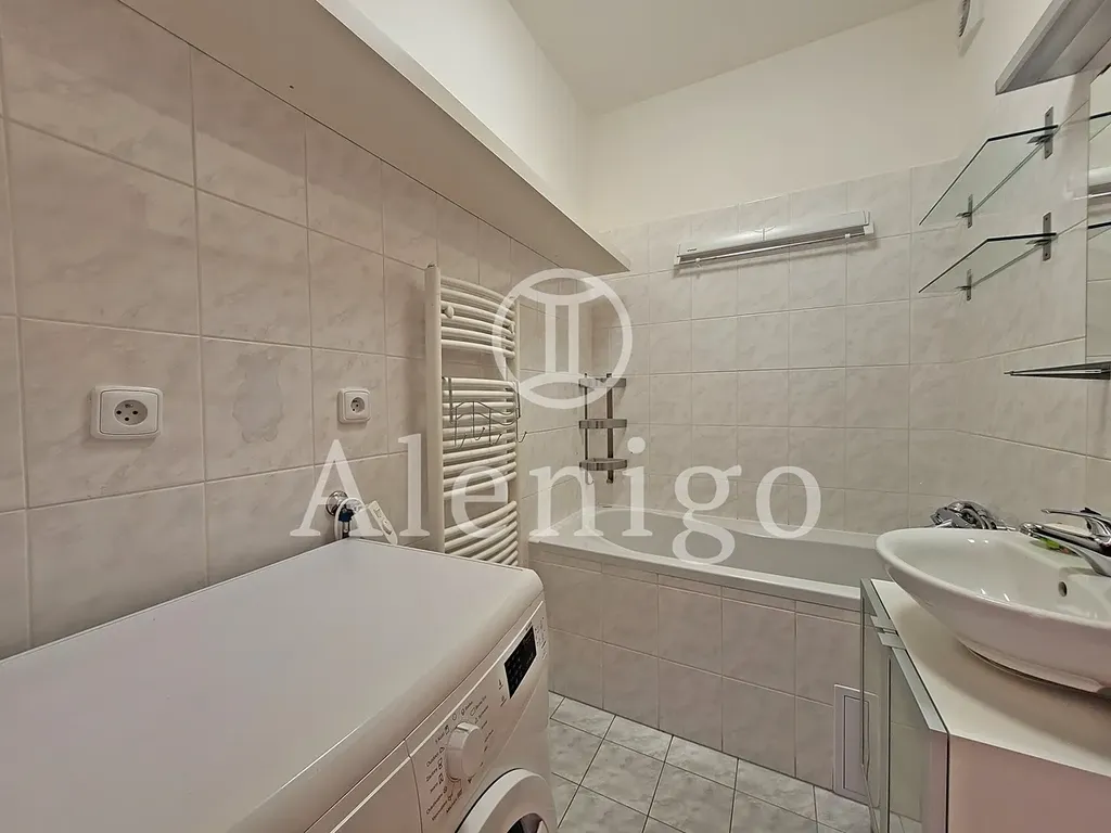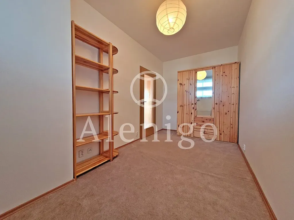 Dům je po renovaci společných prostor. Terasa a obývací pokoj jsou orientovány na jih, z terasy je volný výhled do zeleně (na vlastní pozemek, patřící k bytu). Ložnice a kuchyně jsou orientovány na západ. Kuchyňská linka se sporákem a lednicí. Topení je řešeno vlastním elektrokotlem. V koupelně se nachází vana. Toaleta s vlastním umyvadlem je řešena samostatně. Součástí bytu je také praktická komora v bytě a garážové stání v 1. podzemním podlaží. Měsíční náklady jsou cca 4.500,- Kč + elektřina.