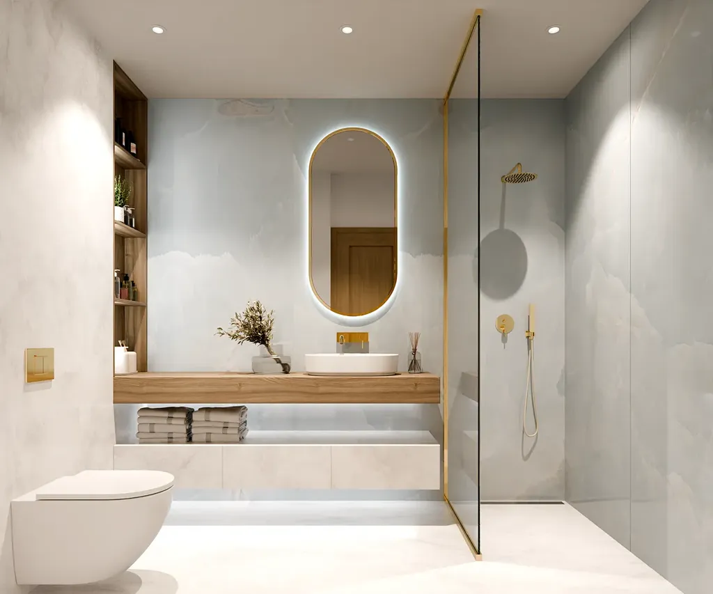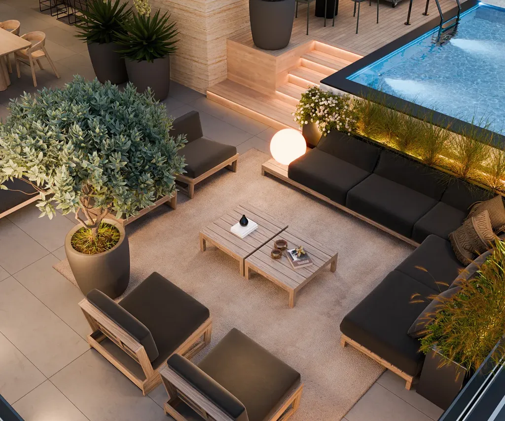 Interiér každého bytu byl pečlivě navržen tak, aby poskytoval dokonalou rovnováhu mezi estetikou a praktičností. Kombinuje moderní design s teplem přírodních materiálů a vytváří tak prostor, který je zároveň luxusní i pohodlný. Otevřený obývací pokoj propojený s kuchyní a jídelnou umožňuje plynulý a prostorný zážitek, zatímco ložnice jsou navrženy jako klidná útočiště s důrazem na pohodlí a soukromí. Koupelny jsou zařízeny ve stylu luxusního wellness s vysoce kvalitní sanitární keramikou a elegantními detaily. Zvláštní pozornost byla věnována ergonomii a funkčnosti prostoru, což zajišťuje maximální pohodlí pro každodenní život. Ať už se jedná o chytré osvětlovací systémy, moderní kuchyňské vybavení nebo prémiové textilie, které doplňují prostor, každý prvek byl navržen s cílem dosáhnout dokonalé harmonie. Výhled na moře, pobřeží a blízké ostrovy z každého kouta.