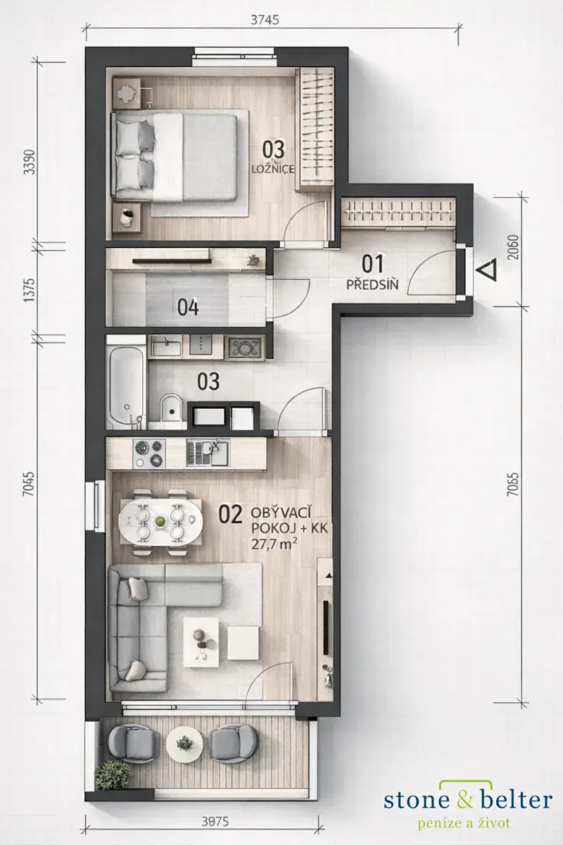 Byt je prakticky a funkčně řešen: