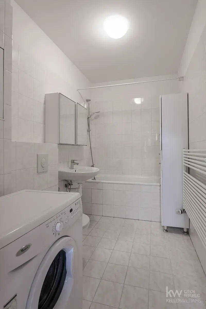 Na ložnici navazuje koupelna s vanou a toaletou. K dispozici je navíc samostatné externí WC, které zvyšuje komfort při běžném provozu domácnosti. Byt je nabízen jako částečně vybavený.