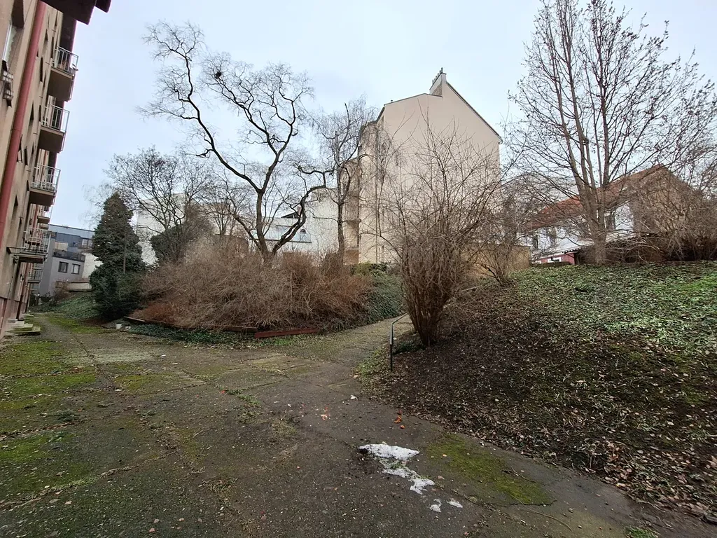 Plastové okno do klidné ulice, parkování modrá zóna, veřejné parkoviště u Bulovky.