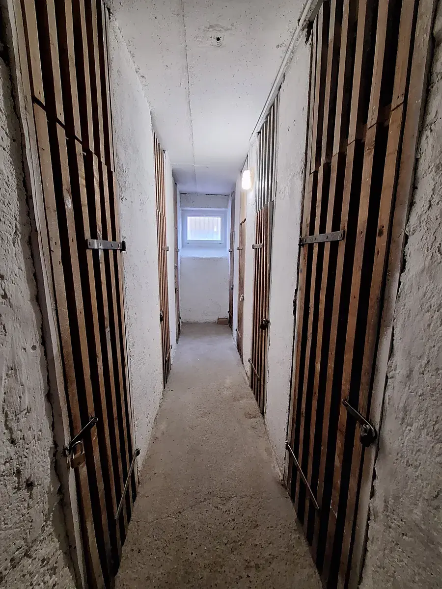 V suterénu domu sklepní kóje.